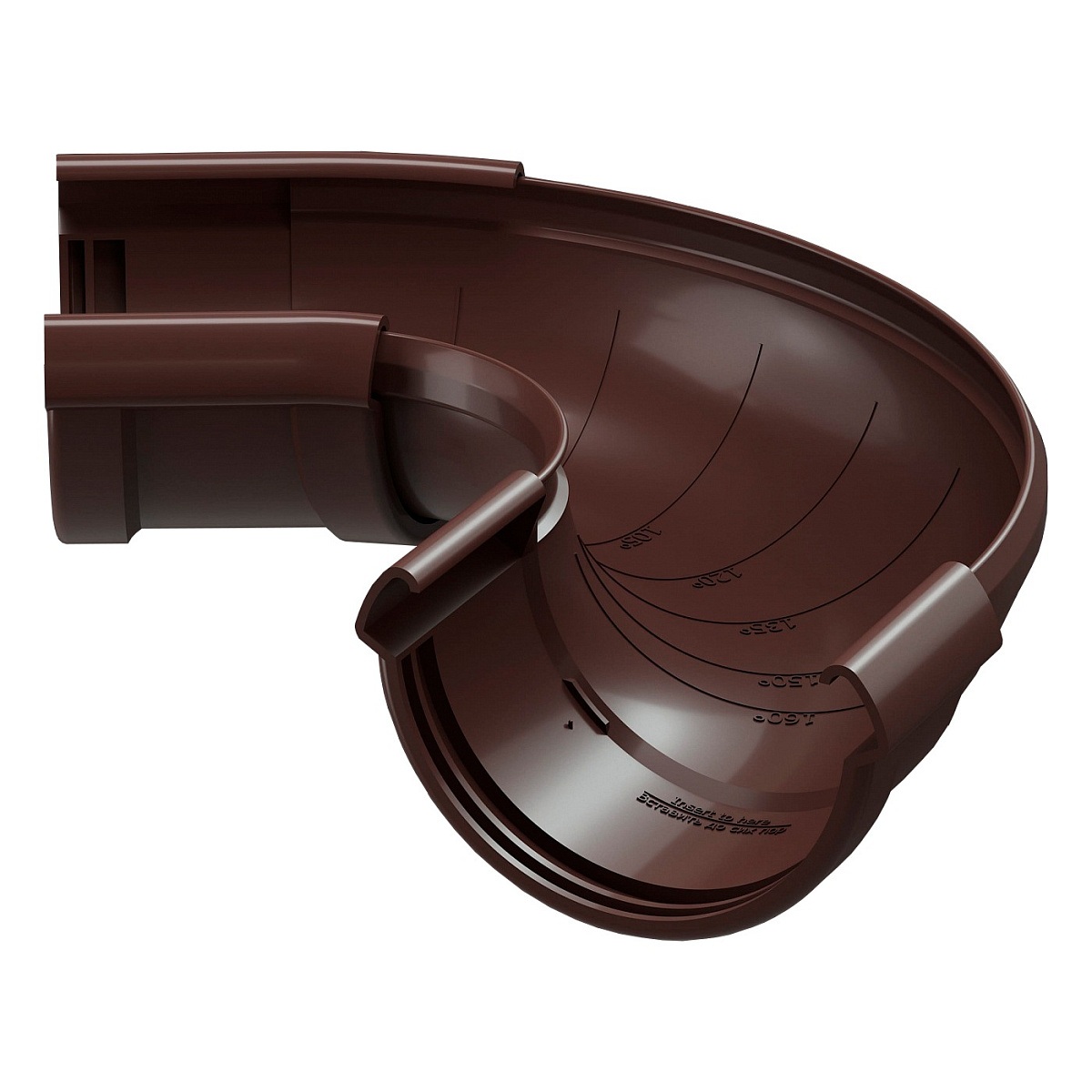 Элемент используется для монтажа желоба пд углами от от 60 до 160 градусов. Угол подходит для внутренних и наружных углах фасада. Угол позволяет регулировать направление движения воды.